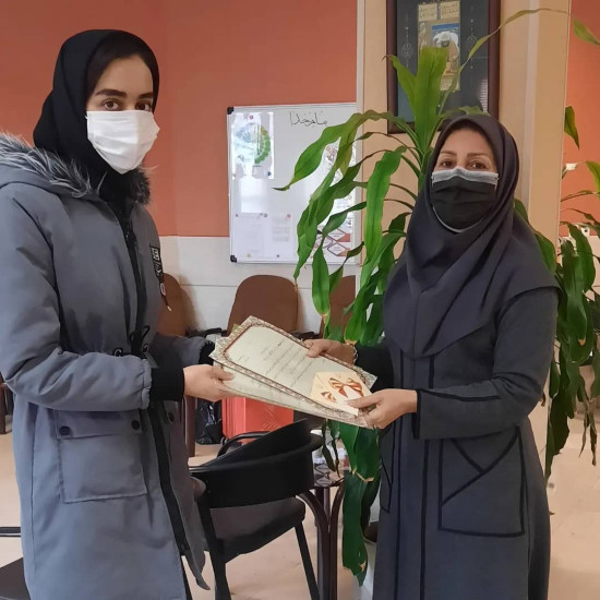اهدای لوح تقدیر و هدیه اداره آموزش و پرورش ناحیه 3 به دانش آموز سابق خانم غزاله ربیعی رتبه 6 ورودی دانشگاههای فنی و حرفه ای و دیپلمه برتر . فارغ التحصیل سال 1399