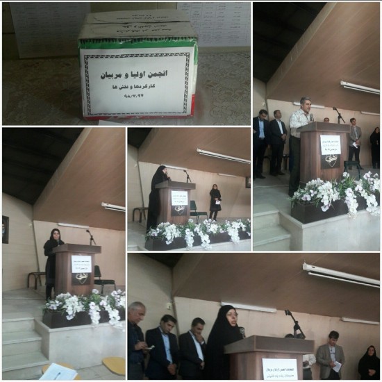 سخنرانی سرکار خانم عمرانپور مدیریت محترم هنرستان در جمع اولیا فهیم و مسئولیت پذیر هنرستان فضیلی در راستای فعالیتهای انجمن در سال گذشته و وظایف آن و بیان نقش و اهمیت وجود یک انجمن اولیا مربیان فعال و همینطور تقدیر و تشکر از اعضای انجمن و مادران همکار در طرح آهن یاری در سال گذشته