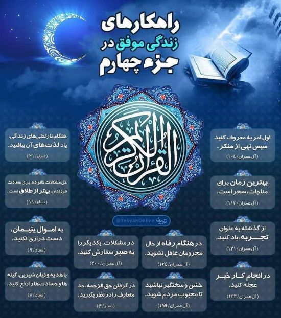 راهکارهای زندگی موفق در جزء چهارم قرآن مجید